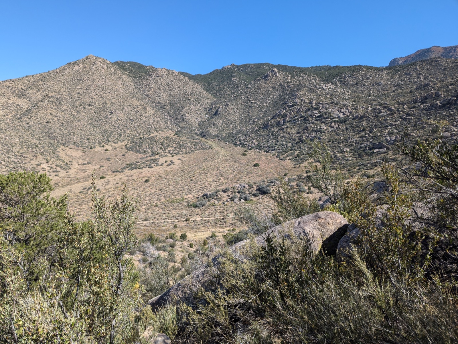 alt-text="Hiking trail through a canyon in the Sandia foothills."